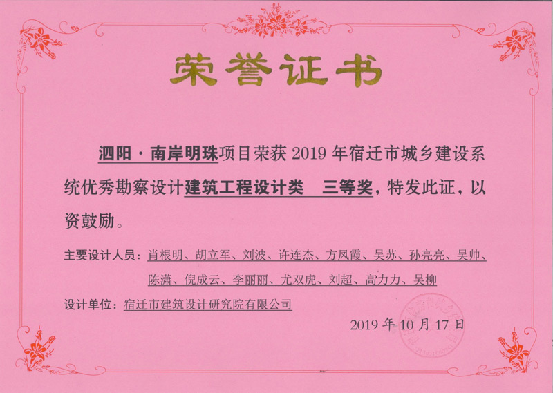 • 泗陽.南岸明珠建筑工程設計三等獎